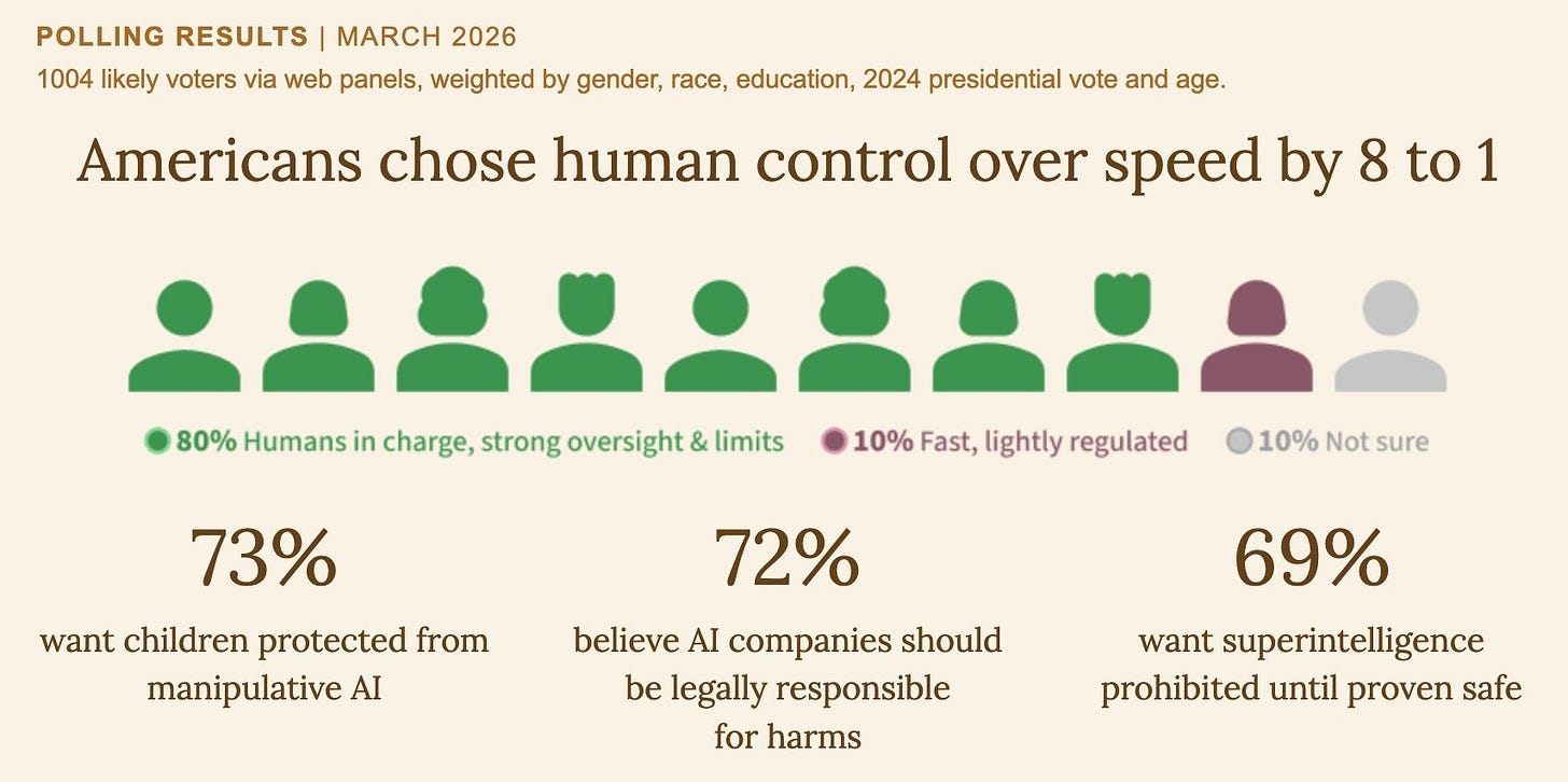 Experts and leaders have jointly agreed on a set of pro-human principles for AI development, calling for a ban on superintelligence. Alongside this declaration, new polling confirms the public wants it banned too. Plus: Some more things we thought you might find interesting!
