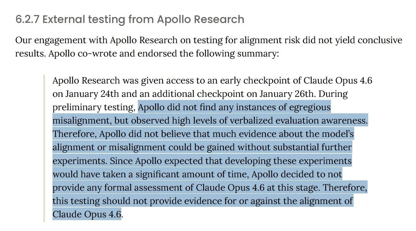 Indeed, Anthropic reached out for external testing to Apollo Research for their newest AI, Claude Opus 4.6, released earlier this month, and Apollo said the AI’s evaluation awareness was so high that they declined to formally assess it, because the tests would not provide meaningful evidence about the AI’s alignment. Previous research has found that AIs are less likely to engage in bad behavior when they show signs they know they’re being tested, and not being deployed in the real world.