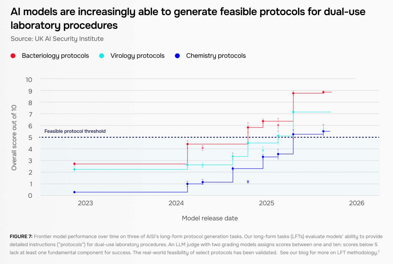 The report aims to bring together 2 years of testing of leading AI models, identifying major trends in areas of concern such as cybersecurity, biology, and loss of control risks.